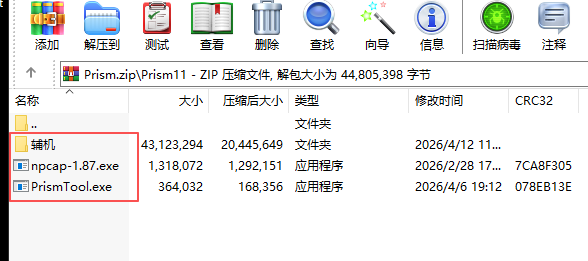 打开以后里面会出现,副机 npcap-1.87.exe PrismTool.exe