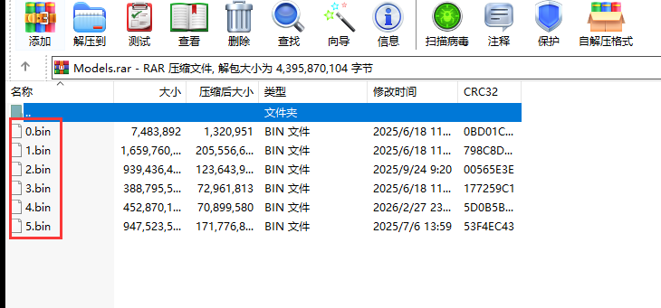 现在打开fuji文件夹,在找到Models文件,把模型文件添加进Models文件夹 (下图看到的0-5.bin文件复制粘贴到Models文件夹里)模型就算添加完成