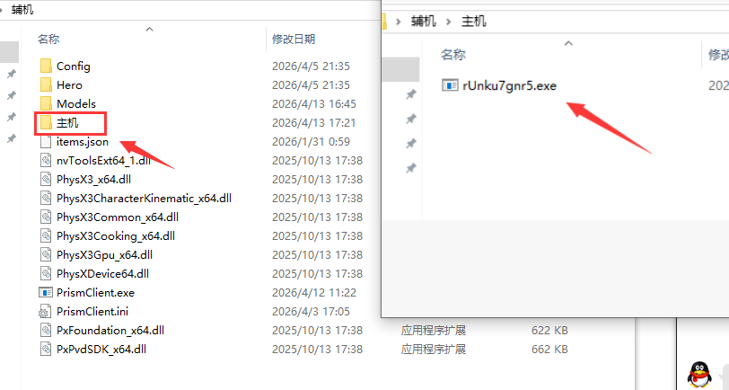 现在把刚下载的配置文件跟副机桌面生成的PrismSever.ini文件一起传到主机桌面(一定要放在桌面)