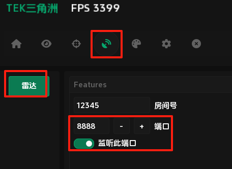 2、TEK软件将雷达端口改成8888然后点击监听此端口、进入游戏
